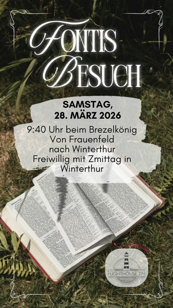 Gemeinsam fahren wir nach Winterthur und besuchen den Fontis Shop, eine christliche Buchhandlung mit einer grossen Auswahl an Bibelübersetzungen, Andachtsbüchern, Accessoires und vielem mehr.